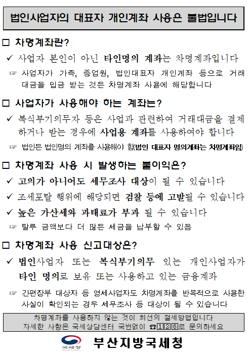 사업자 차명계좌 사용에 따른 불이익 안내