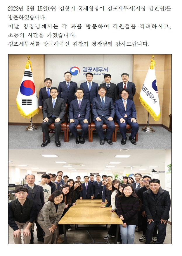 김창기 국세청장 김포세무서 방문