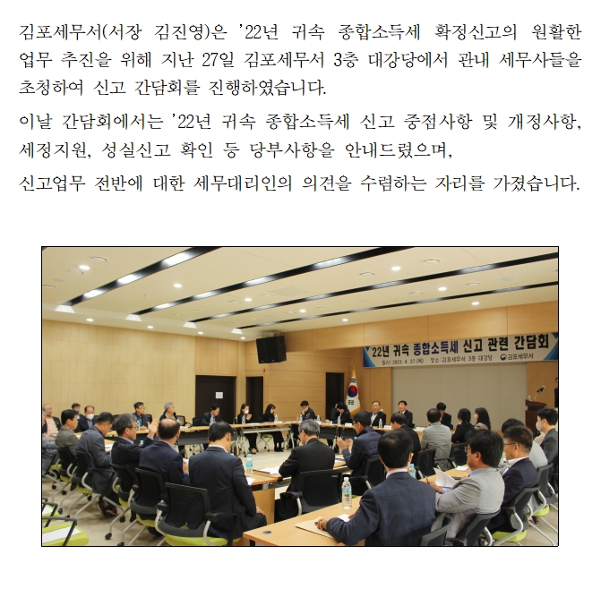 2022년 귀속 종합소득세 확정 신고 간담회 실시