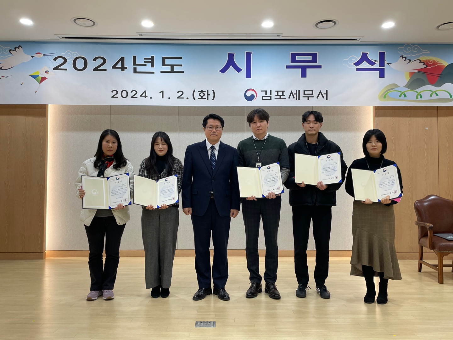 2024년 김포세무서 시무식과 함께 유공공무원표창장 수여식을 진행하였습니다.