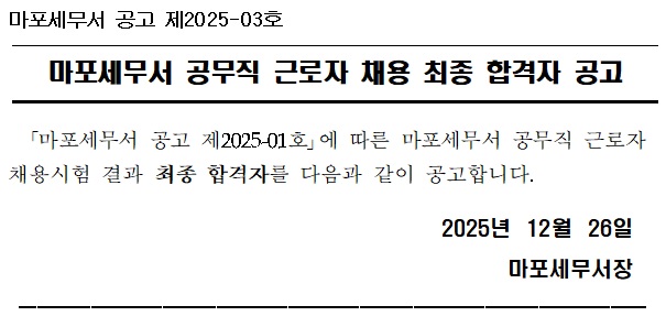 (2025-03호) 마포세무서 공무직 근로자(환경관리직) 채용 최종합격자 공고.hwp