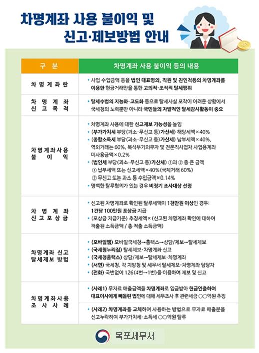차명계좌 사용 불이익 및 신고 제보방법 안내