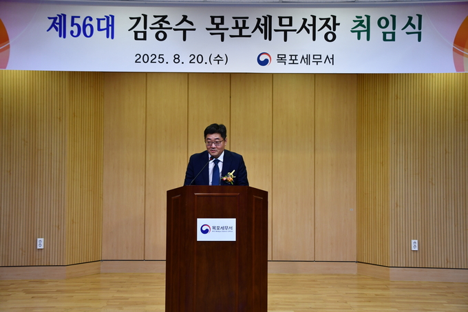 목포세무서는 2025년 8월 20일(수), 대회의실에서 제56대 김종수 세무서장의 취임식 행사를 가졌습니다.