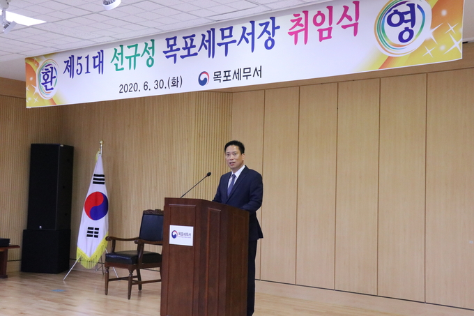 목포세무서는 2020년 6월 30일 4층 대회의실에서 제51대 선규성 세무서장의 취임식을 가졌습니다. 선규성 세무서장은 취임사에서 납세자의 현장의 목소리를 진정성 있게 가슴깊이 귀기울이고 전폭적인 세정지원을 하여 국민에 대한 봉사자로서 친절, 공정한 직무수행을 하면서 항상 겸손하게 근무에 임해줄 것을 강조하였습니다.