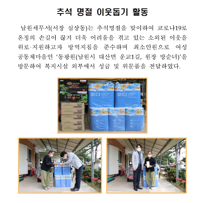 추석 명절 이웃돕기 활동