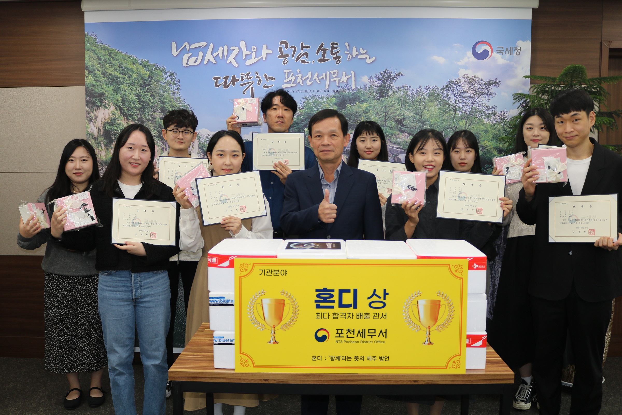 전병오 세무서장은 "바쁜 업무 중에도 학습을 병행하며 훌륭한 합격의 성과를 이룬 여러분의 노고에 감사드린다."며 축하인사를 전했다.