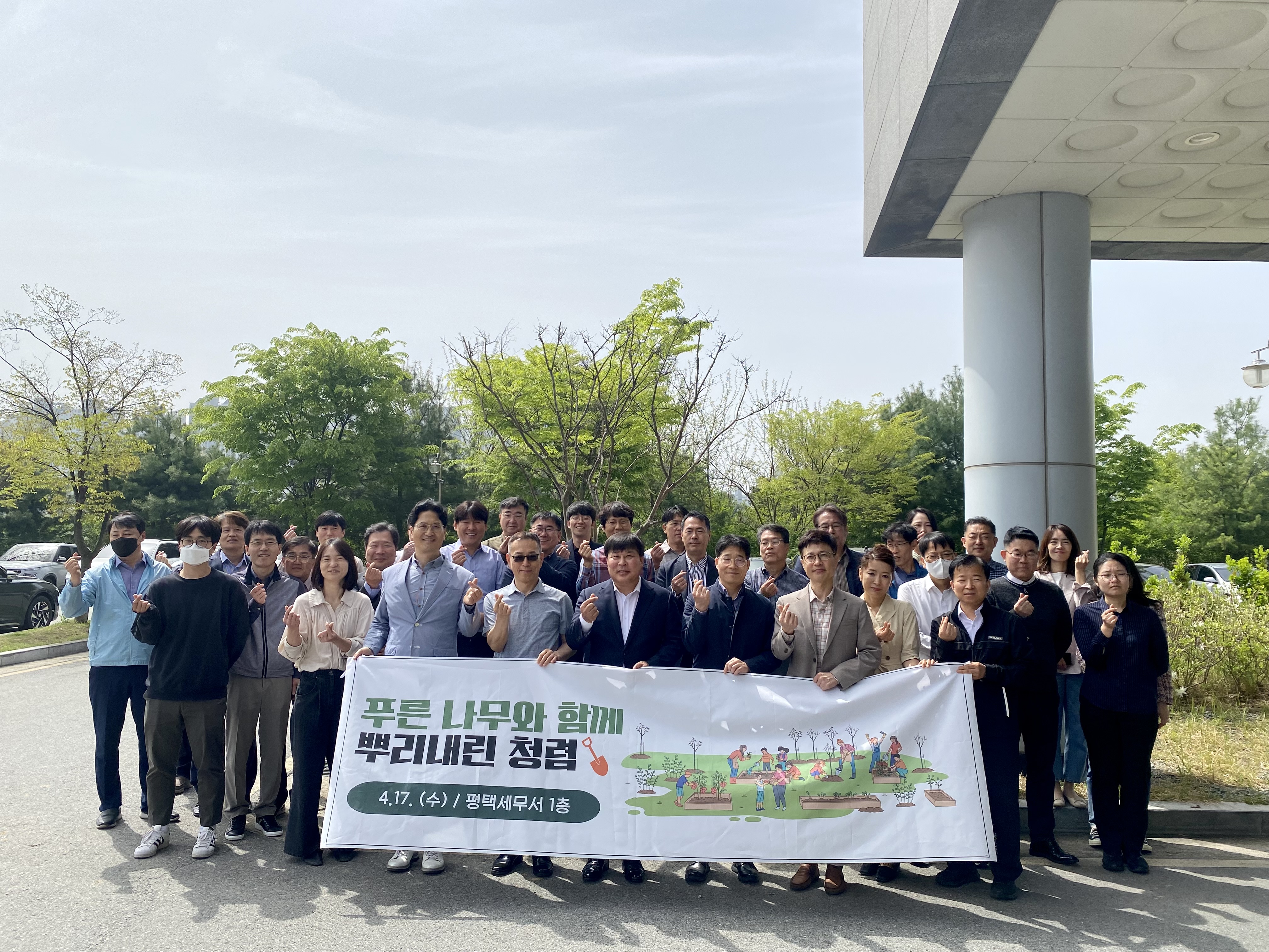 2024년 4월 17일 (수) 평택세무서(서장 정순범)에서 식목일 행사가 진행되었습니다.최근 지구온난화로 인한 기후변화로 나무심기의 중요성이 부각되고 있습니다. 우리 세무서직원들은 청사 주변에 나무를 심고 거름을 주는 행사를 진행하여 환경정화 운동에 앞장서고있습니다. 또한 청렴구호를 외치며 준법청렴문화 확산을 위한 다짐을 하였습니다.
