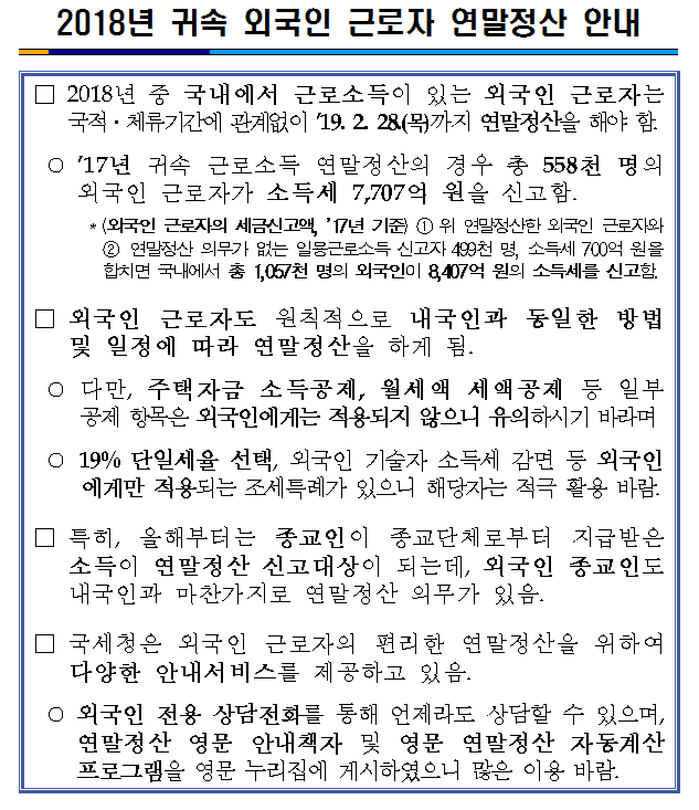 2018년 귀속 외국인 근로자 연말정산 안내(.hwp