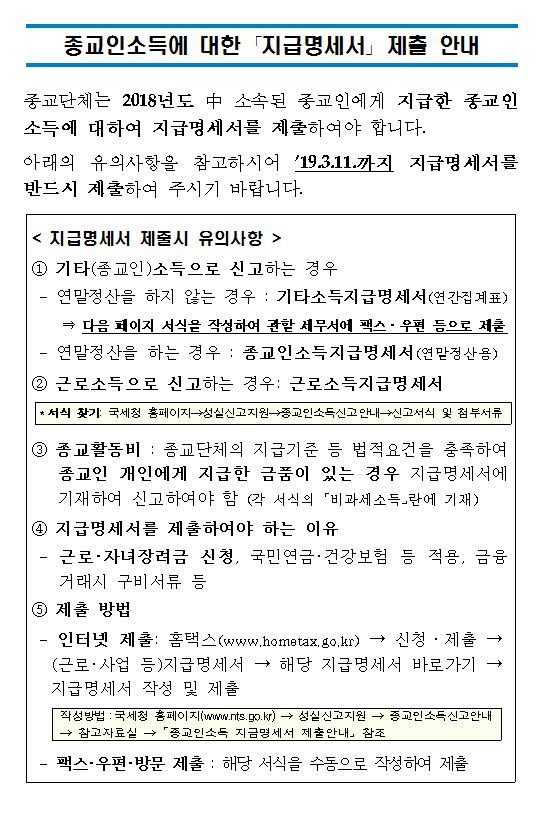 종교인 소득에 대한 지급명세서 제출 안내
