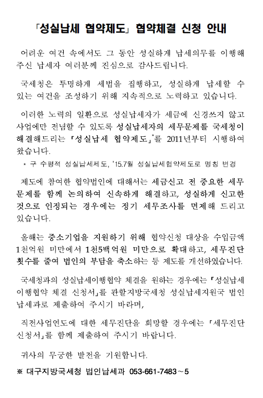「성실납세 협약제도」 협약체결 신청 안내