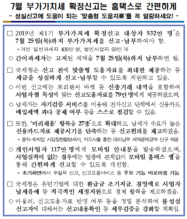 190711 7월 부가가치세 확정신고는 홈택스로 간.hwp