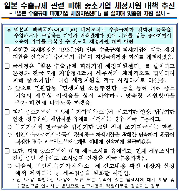 일본 수출규제 관련 피해 중소기업 세정지원 대책 추진