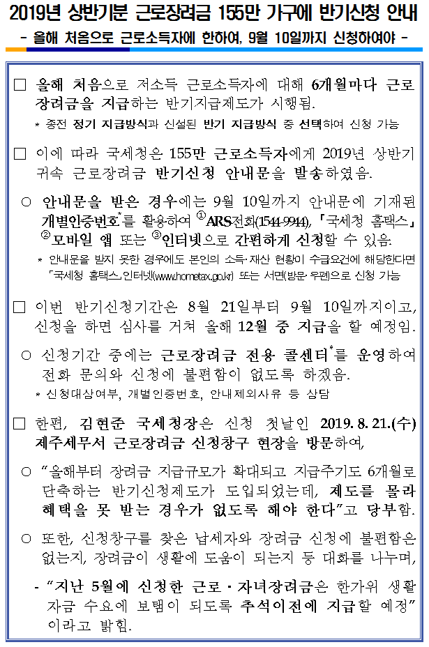 ★190821_(보도자료)근로장려금 반기신청(최.hwp