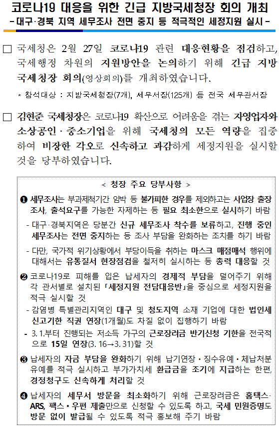 코로나19 대응을 위한 긴급 지방국세청장 회의 개최