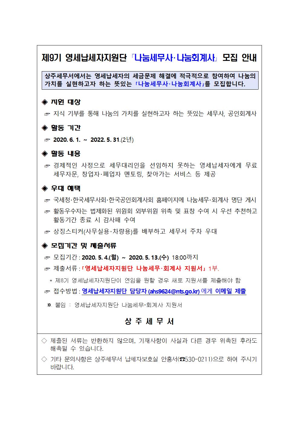 제9기 영세납세자지원단 나눔세무사·나눔회계사 선발.hwp