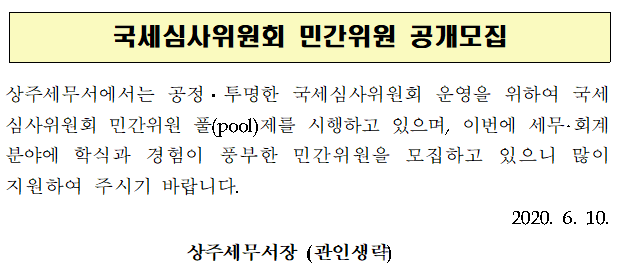 국세심사위원회 민간위원 공개모집