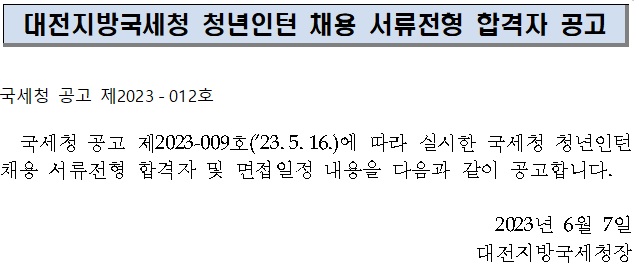 (붙임)대전청 청년인턴 2차 재공고 서류전형 합격자 공고.hwp