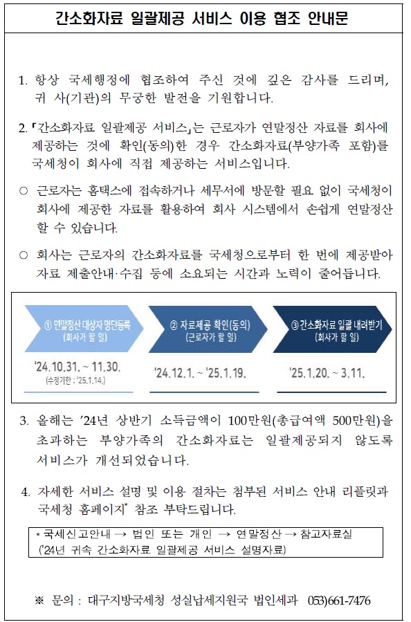 2024년 귀속 연말정산 간소화자료 일괄제공서비스 안내