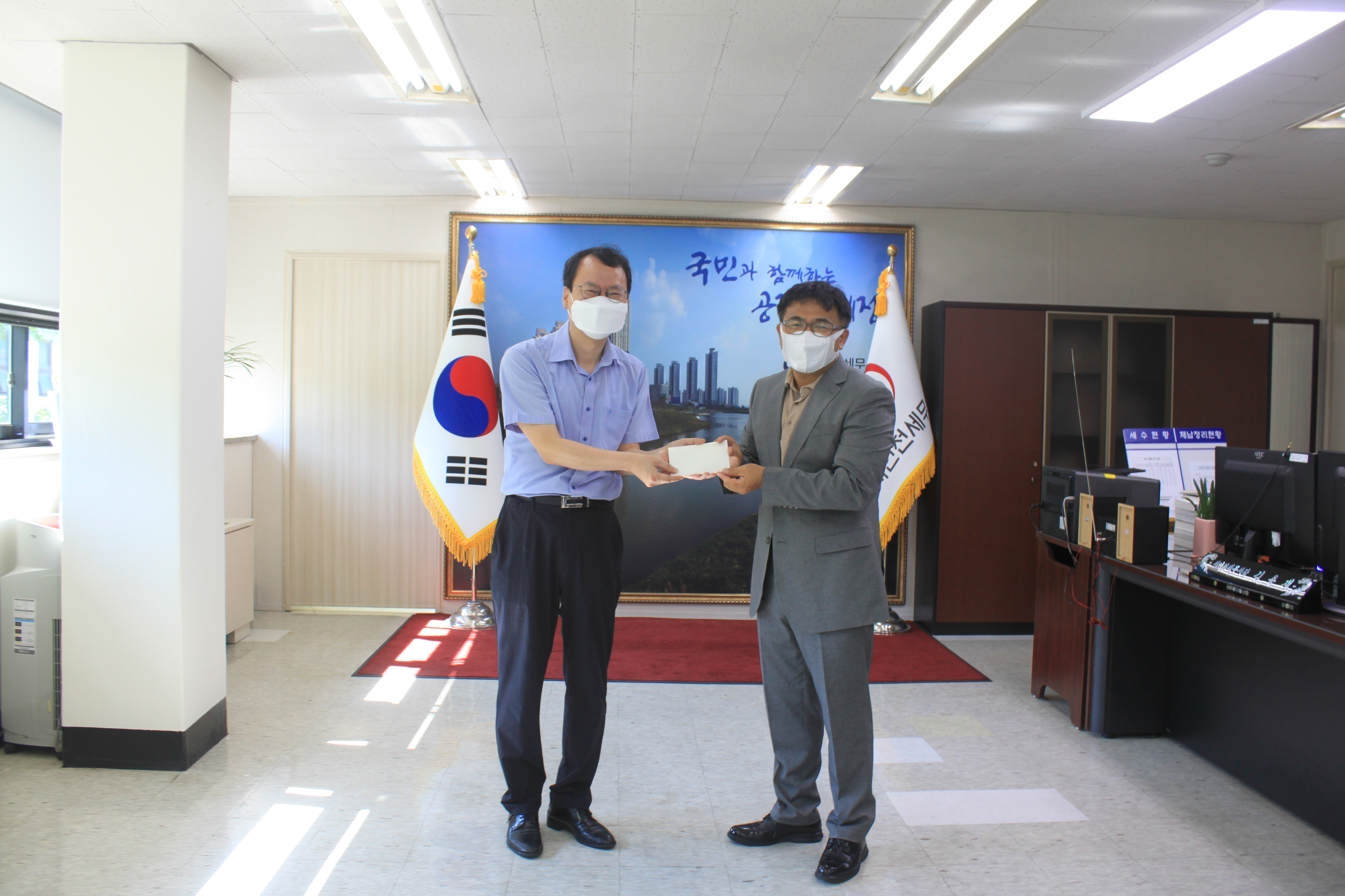 서인천세무서(서장 김용재)는 2021년 7월 26일(월) '21년 상반기 업무우수 민원실 선정에 대한 포상금을 전달하였습니다.