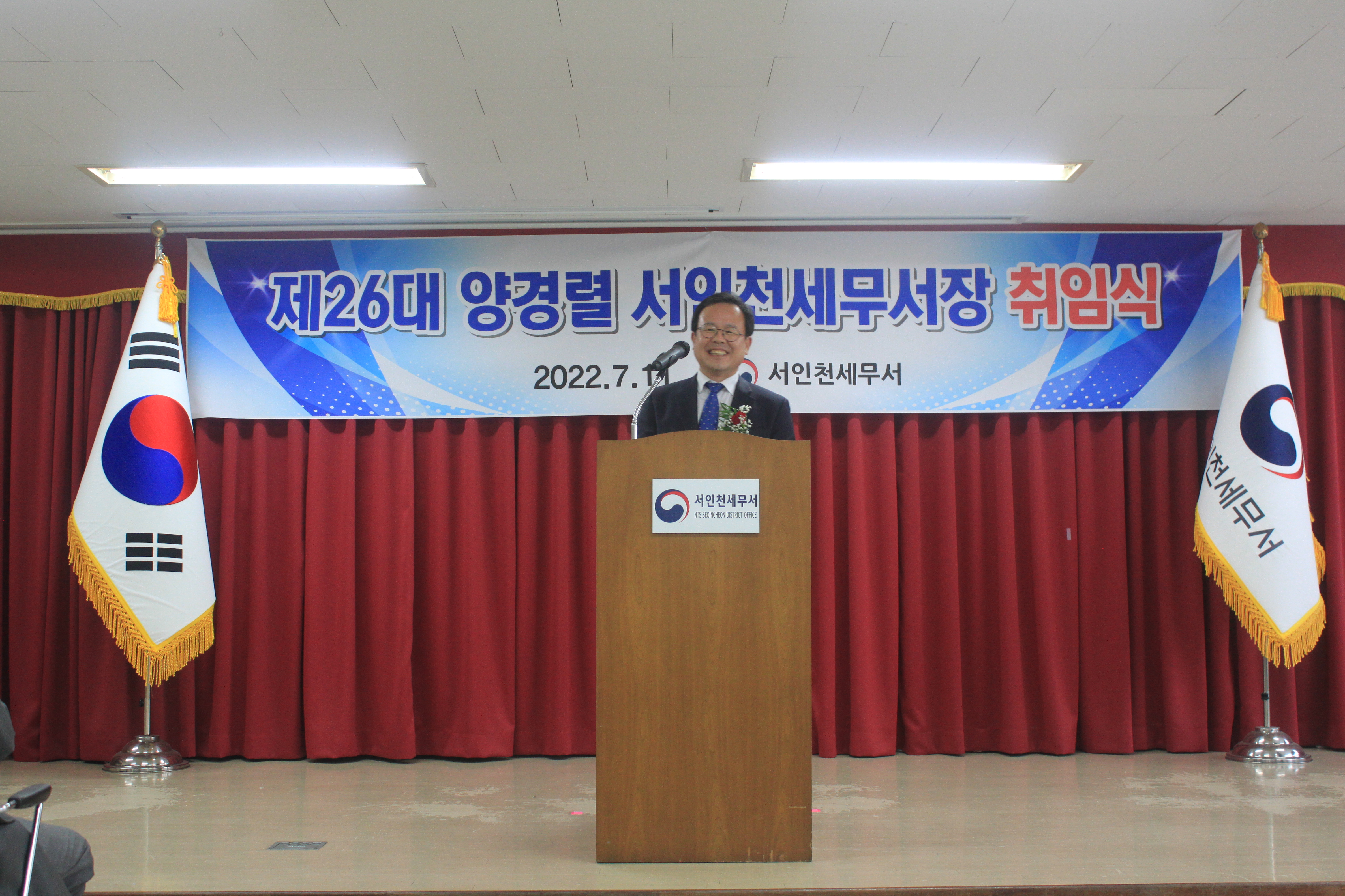 서인천세무서(서장 양경렬)는 2022년7월11일(월) 서인천세무서 3층 대회의실에서 제26대 양경렬 서인천세무서장 취임식을 개최하였습니다.
