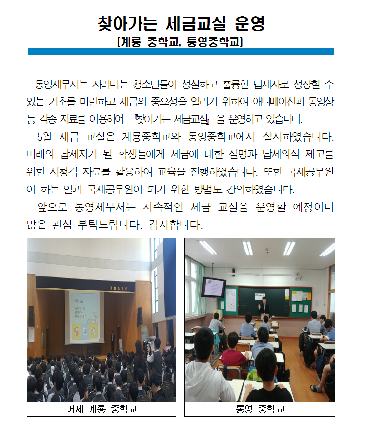 (2018.05.16) 찾아가는 세금 교실 운영(계룡중학교, 통영중학교)