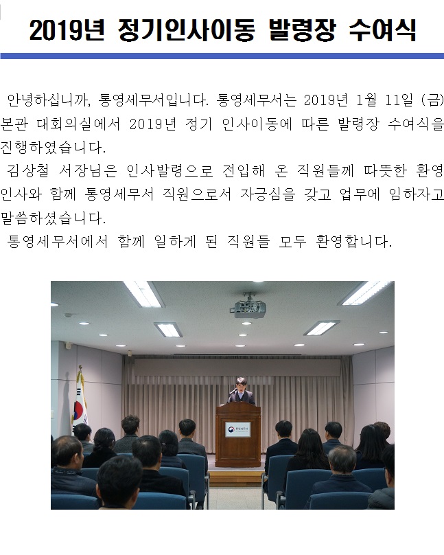 (2019.01.11) 2019년 정기인사이동 발령장 수여식
