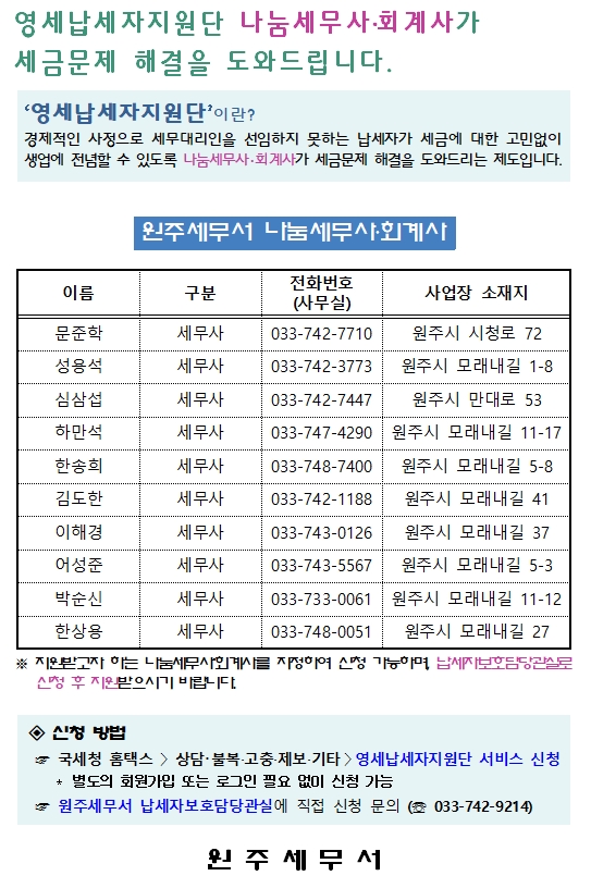 영세납세자지원단 「나눔 세무사・회계사」 안내