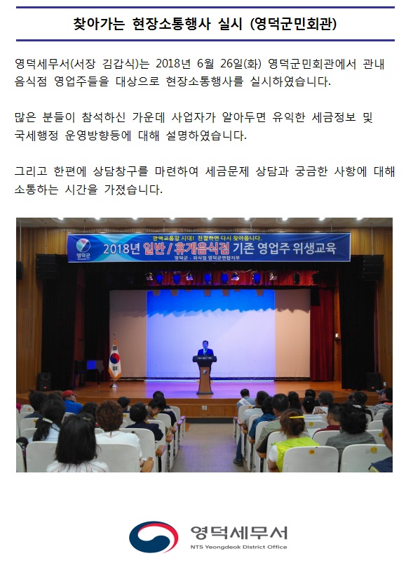 찾아가는 현장소통행사 실시 (영덕군민회관)