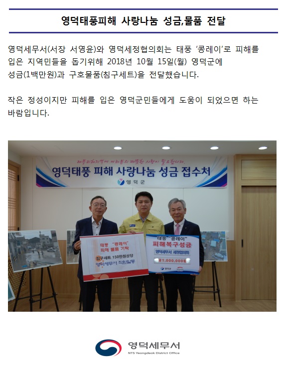 영덕태풍피해 사랑나눔 성금,물품 전달