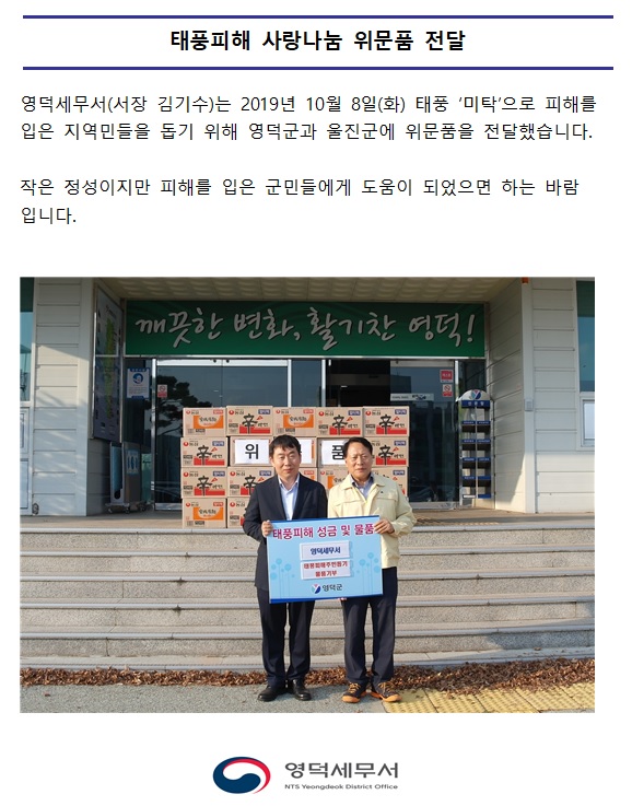 태풍피해 사랑나눔 위문품 전달