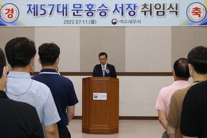 2022년 7월 11일(월) 여수세무서 대회의실에서 제57대 문홍승 세무서장의 취임식 행사를 가졌습니다.