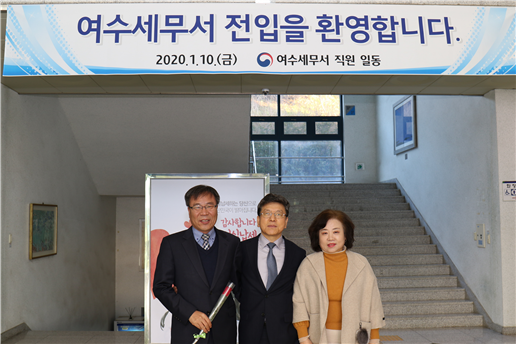 2020년 1월 10일 인사이동으로 여수세무서에 전입한 31명의 직원들을 위해 김정윤 여수세무서장은 과장들과 함께 현관에서 출근하는 전입직원들에게 장미꽃을 나누어주는 환영식을 실시하였습니다. 김정윤 서장은 「함께 행복한 세무서를 만들자며」이 같은 행사를 준비하였습니다.